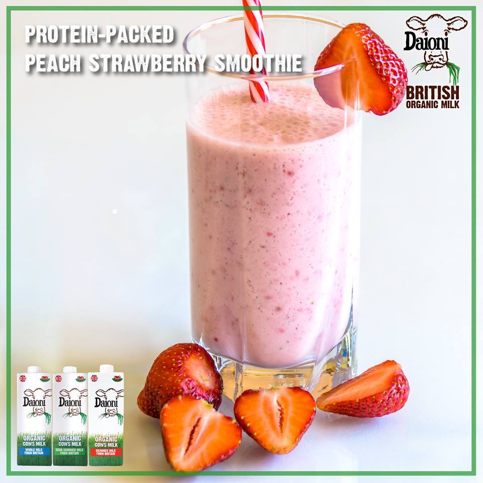 1. For fresh strawberries: wash well and remove the stems. For frozen strawberries: put them straight into the blender. Blend the strawberries with Daioni organic fresh milk.