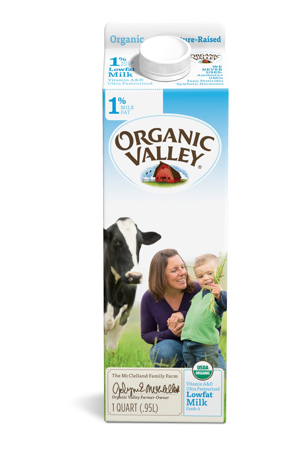 Milk from Organic Valley’s organic cows is skimmed using the most advanced technology, allowing the milk to retain its naturally sweet, creamy flavor and abundant nutritional value. Organic Valley 1% low-fat pasteurized milk is produced entirely without antibiotics, synthetic hormones, harmful pesticides, or GMOs.