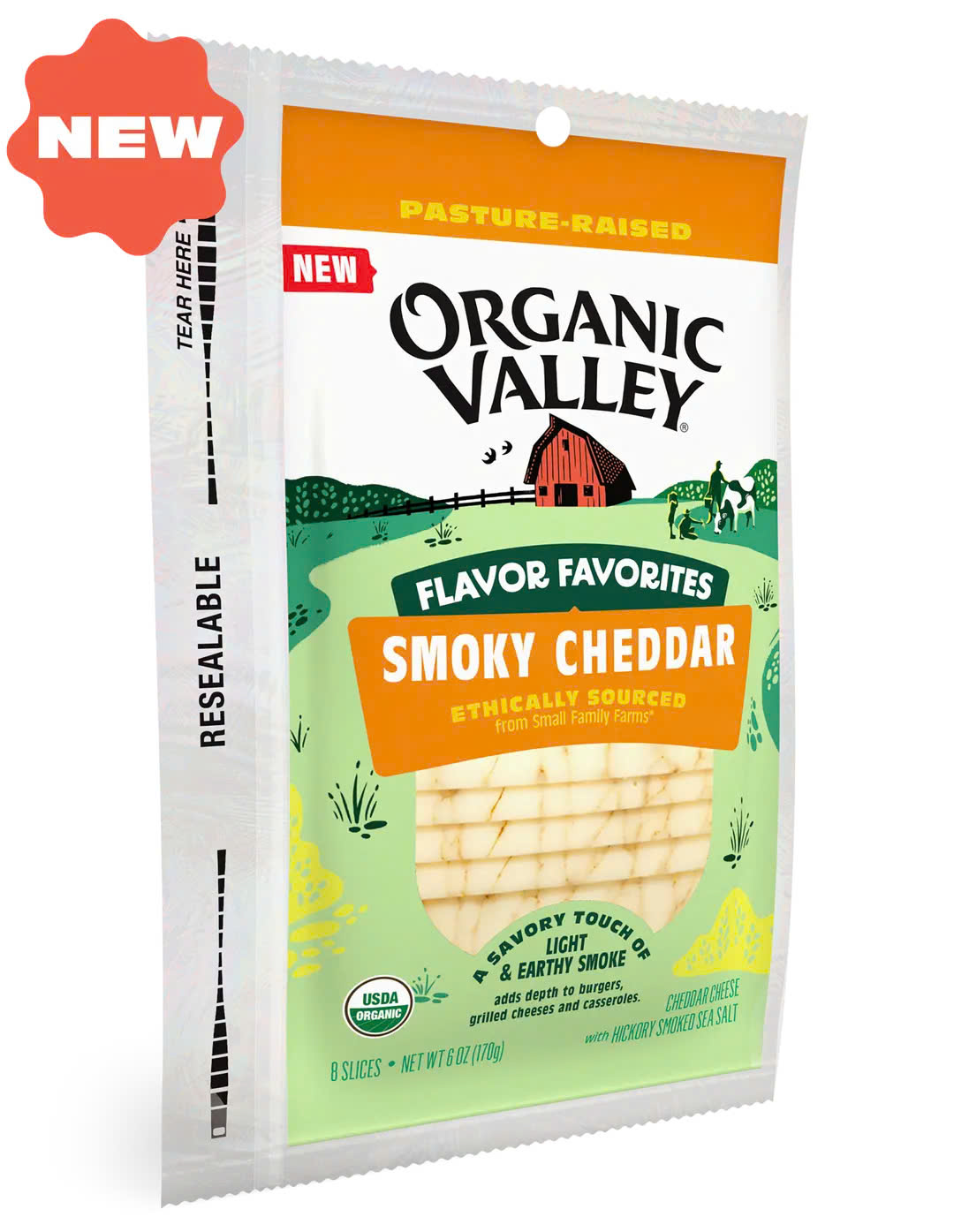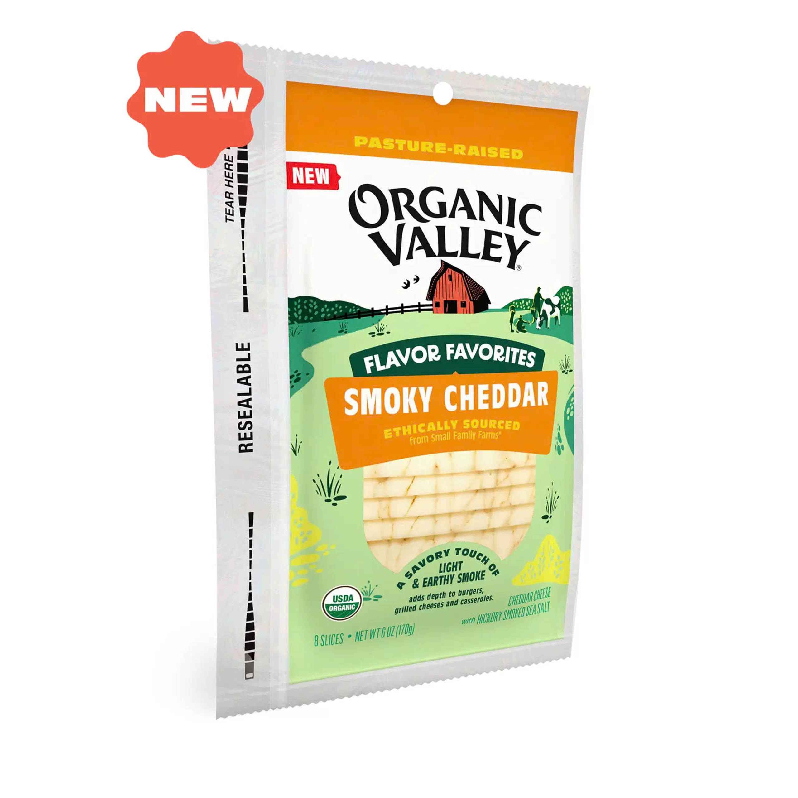 Imagine not having to fire up a backyard smoker to achieve the flavor you want. Our Smoky Cheddar Slices bring a perfectly balanced combination of rich, creamy cheddar and hickory-smoked sea salt. Organic milk from naturally pasture-raised cows ensures there is no compromise when it comes to elevating your sandwiches, burgers, and grilled cheese creations.