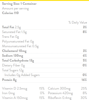 Grade A lowfat organic milk, Vitamin A Palmitate, Vitamin D3.