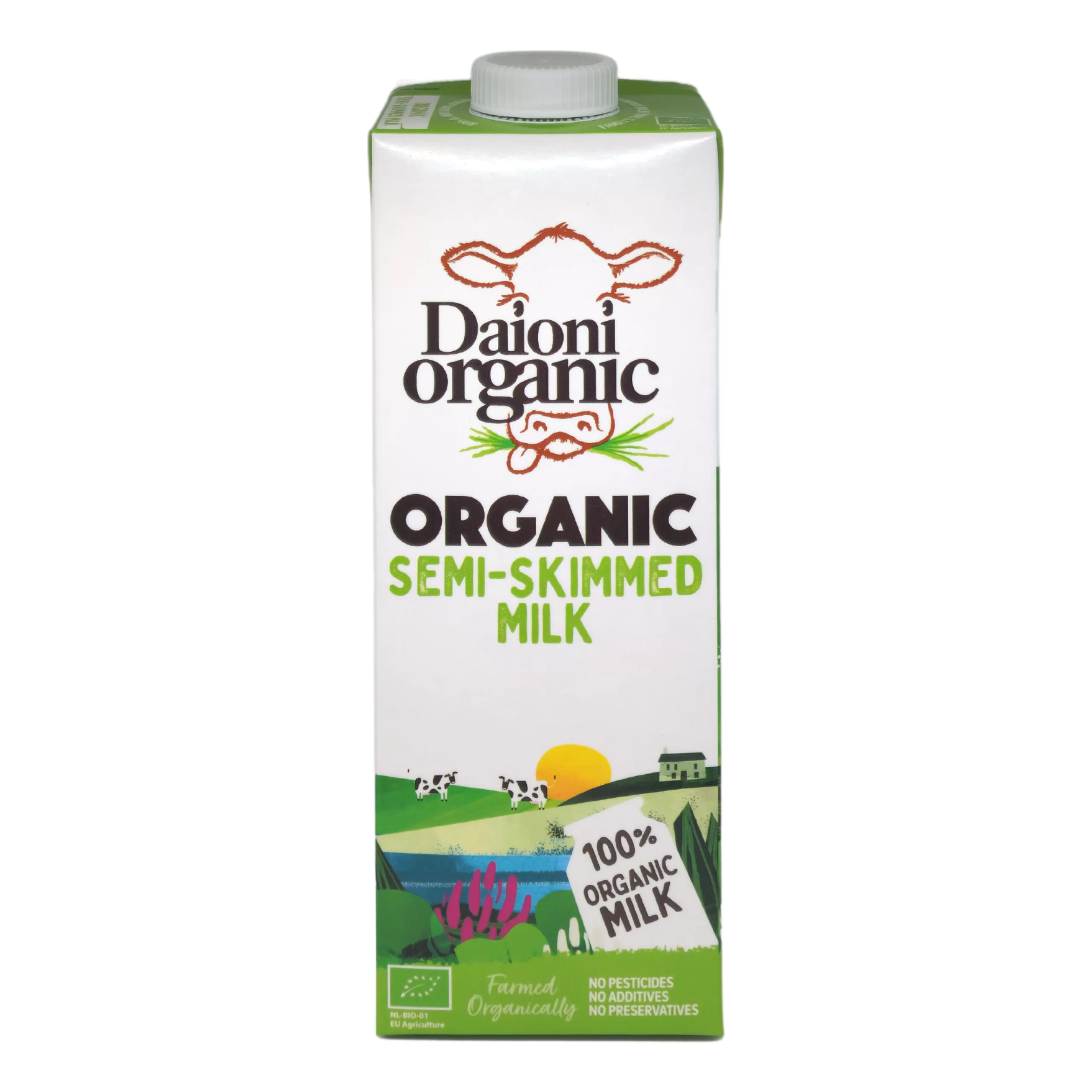 Daioni organic semi-skimmed fresh milk contains high levels of minerals, antioxidants, vitamins and Omega 3. No chemicals are used and it contains no preservatives.