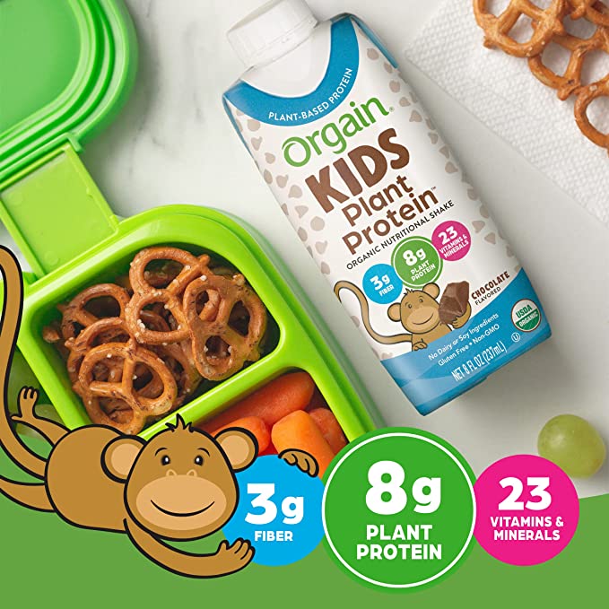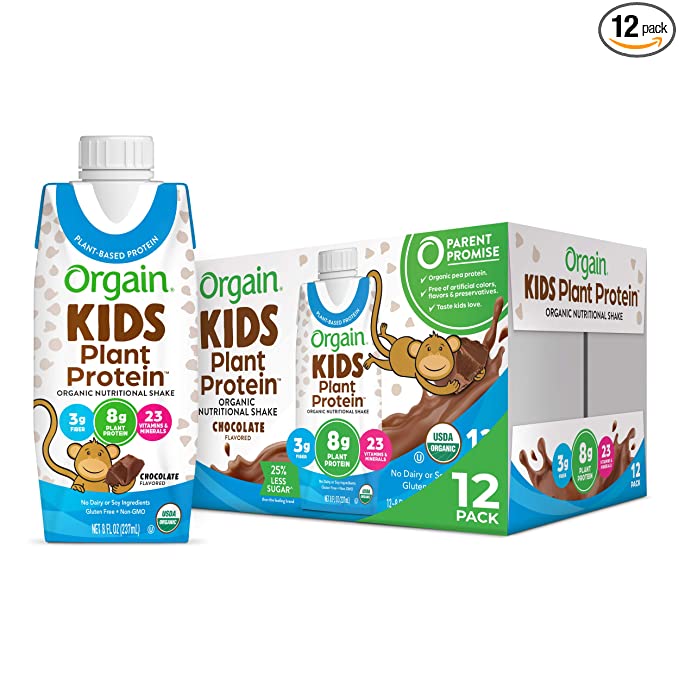 Orgain Kids Plant Protein Chocolate is an organic nutritional milk made from plant-based protein, including peas, chia seeds, rice and organic vegetables. The product provides complete nutrition for children, has a delicious chocolate flavor, is USDA certified, safe and wholesome for health.