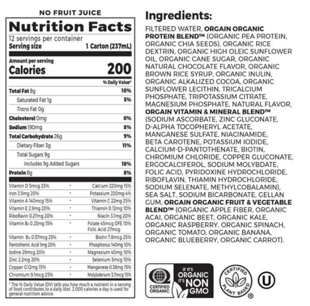 ORGAIN KIDS PLANT PROTEIN ORGANIC MILK – CHOCOLATE FLAVOR 237 ml