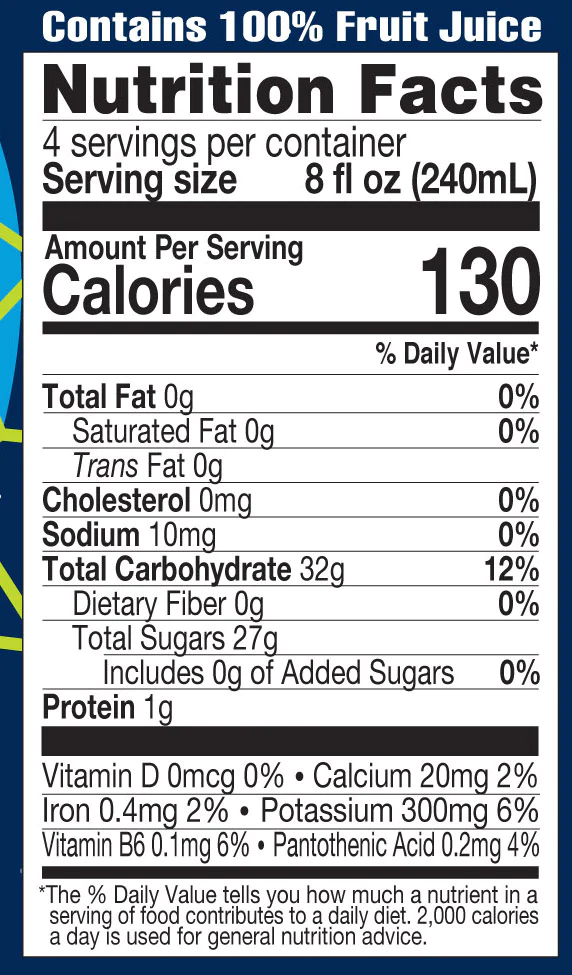 Organic black cherry juice from concentrate, organic grape juice from concentrate, organic pear juice from concentrate, organic apple juice from concentrate, water.