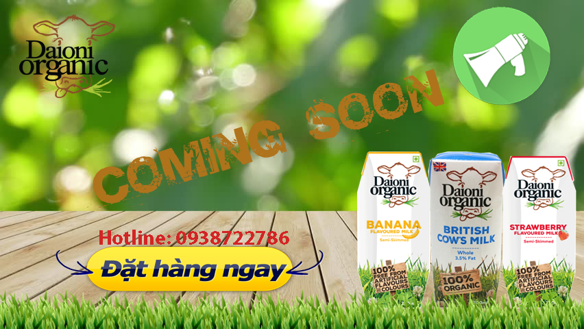Công ty chúng tôi xin thông báo đến cả nhà, sữa hữu cơ Daioni loại 200ml gồm sữa hữu cơ nguyên kem 200ml, sữa hữu cơ Daioni vị Dâu và vị Chuối đã về TỚI VIỆT NAM. Quý khách hàng nhanh chóng gửi đơn hàng cho chúng tôi. Chúng tôi sẽ giao hàng kịp thời và nhanh chóng cho Quý khách hàng.